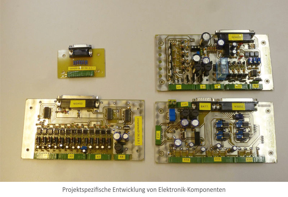 Die so entstandenen Prüf-Wagen (Fotos) haben eine kompakte und leichte Bauform und sind mit neuester Messtechnik ausgestattet. Die Prüf-Wagen fahren mit dem Schlepper an der Montage-Linie mit. Im Batterie-Betrieb laufen alle unseren Wagen über acht Stunden.